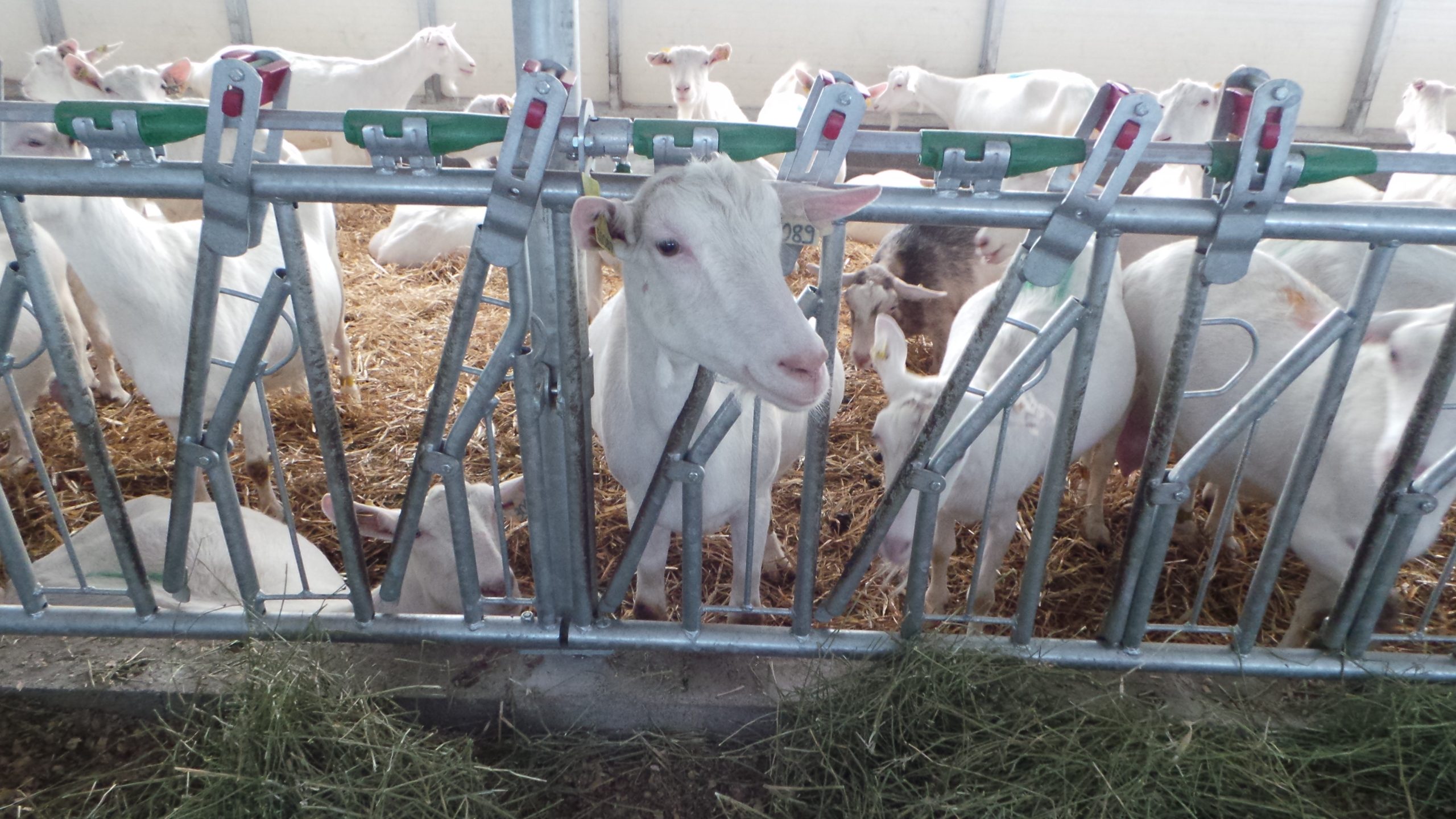 The goat headlock can be used to hold animals in place at the trough in order to limit feed competition and to carry out everyday handling operations. Installed with its own post on a trough wall. Vertical bar partitions and goat hurdles enable animal separation.